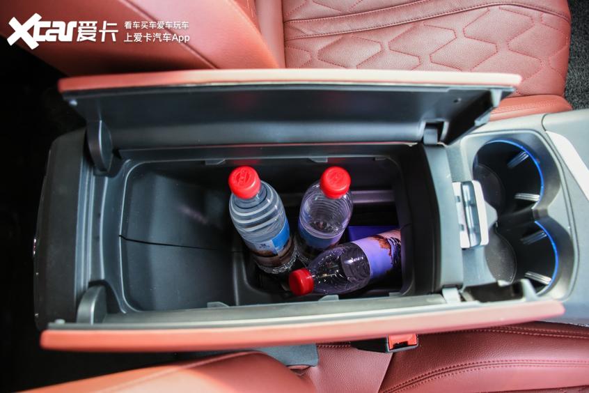 在几天的长途自驾过程中,为了应对高海拔干燥的气候,我们在车内放置了较多的矿泉水。比较令我惊喜的是,车内处储物空间还是非常丰富的,尤其是中央扶手箱内,其纵深以及深度表现还是非常棒的,并且在中央扶手箱内还设有出风口,可以充当一个简单的小冰箱。